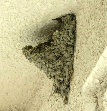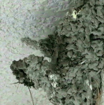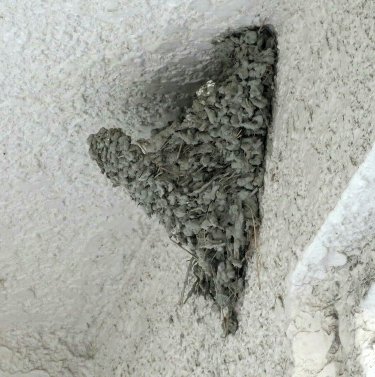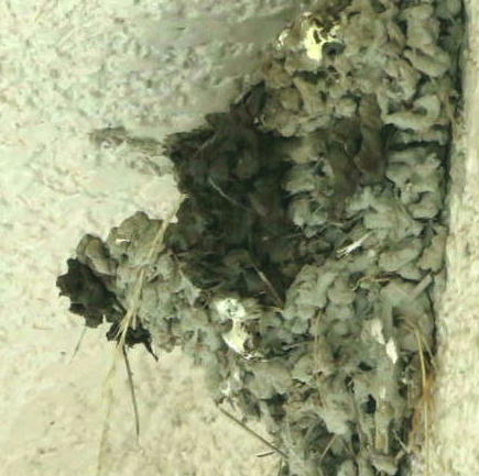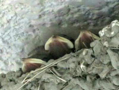 一週間ほど経って、親達によって巣の修復が始まりましたが、今でも夕方には雛たちが帰ってきてるので当然こうなります。