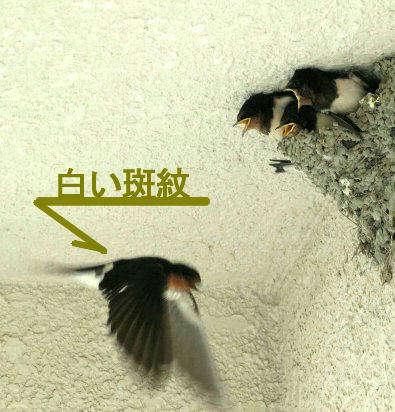 1羽の雛の背中には白い羽毛が混じり親に似ています。来年戻ってきた時の目印になりそうです。