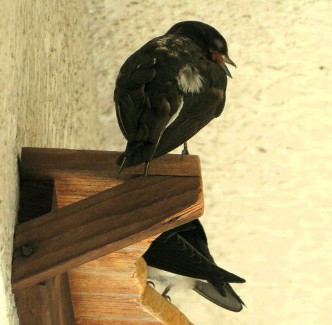しかしその後すぐ、ワンペアは玄関から離れた場所で巣作りを始め、